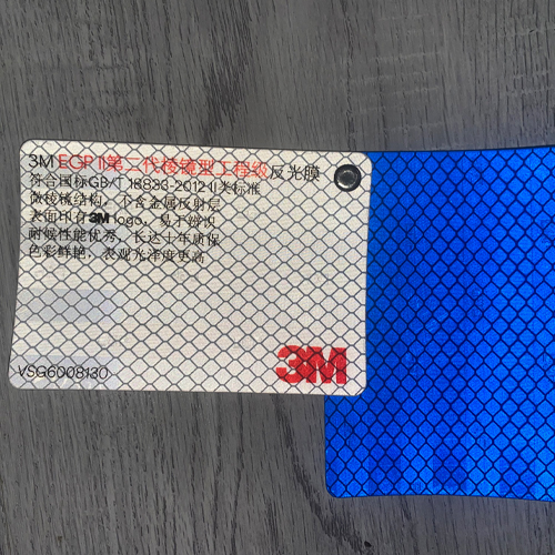 3M新款EGP工程級反光膜全稱“3M EGP Ⅱ第二代棱鏡工程級”反光膜,此產品符合國標GB/T 18833-2012中Ⅱ類反光膜標準。產品為微棱鏡結構,不含金屬反射層,反光膜表面印刷有3Mlogo,易于標識。產品性能優秀,戶外耐候為10年。3MEGP新款反光膜色澤對比老產品更為鮮艷,表面光澤度也更高。