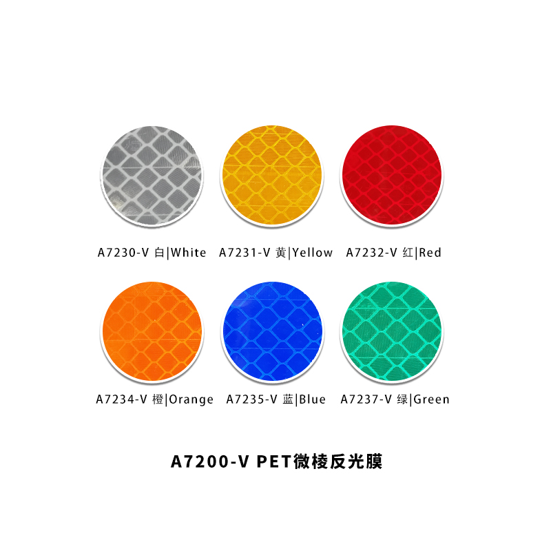產品簡介:PET微棱鏡反光膜是安元光學科技推出的一款棱鏡型反光膜。產品采用了新的棱鏡角度設計和改良的PVC+PET材質,具有更好的反光性能和更美觀的膜面。因其產品戶外耐候性能僅在1年左右,建議應用于臨時標識標牌、臨時交通設施、農業/機械反光車貼等領域。保障工程施工或其他臨時突發狀況下,行人和車輛的安全。